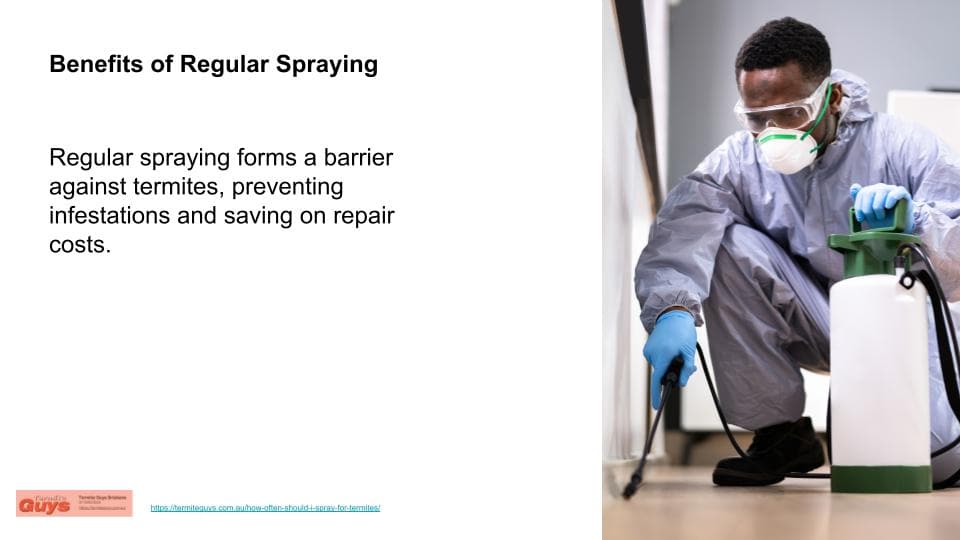 - One of the primary benefits of spraying is the prevention of termite infestations. By taking a proactive stance and spraying regularly, homeowners can safeguard their property from the potential devastation termites can cause. This not only saves the structure of the home but also eliminates the financial burden of costly repairs.